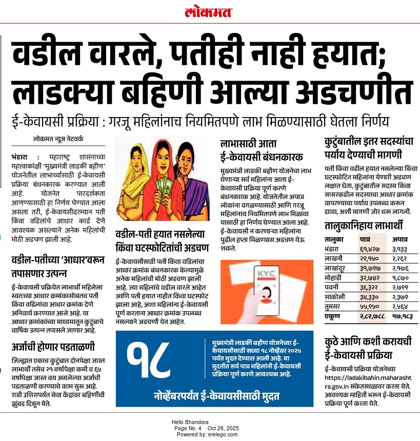 🔹 लाडकी बहीण योजनेतील ई-केवायसीचा गोंधळ आता सुटणार
